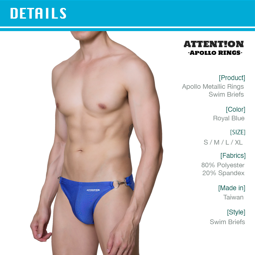 【Royal Blue】Apollo Metallic Rings Swim Briefs