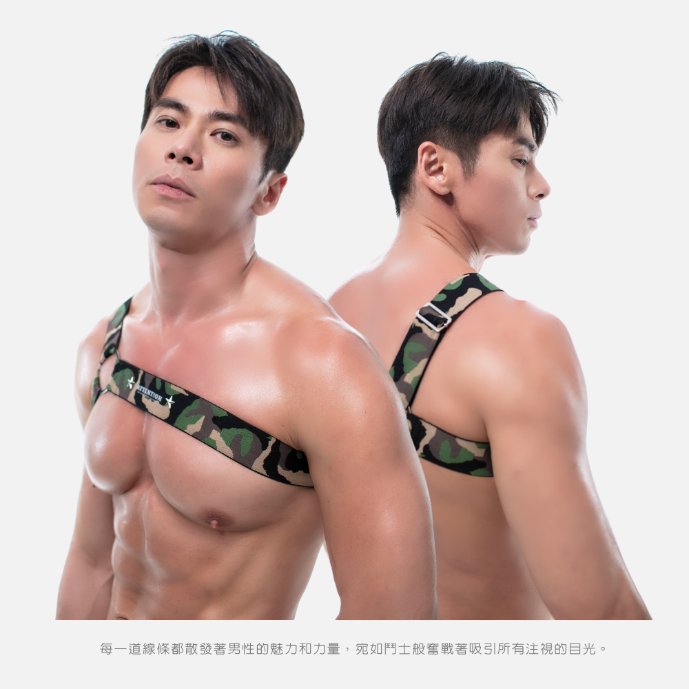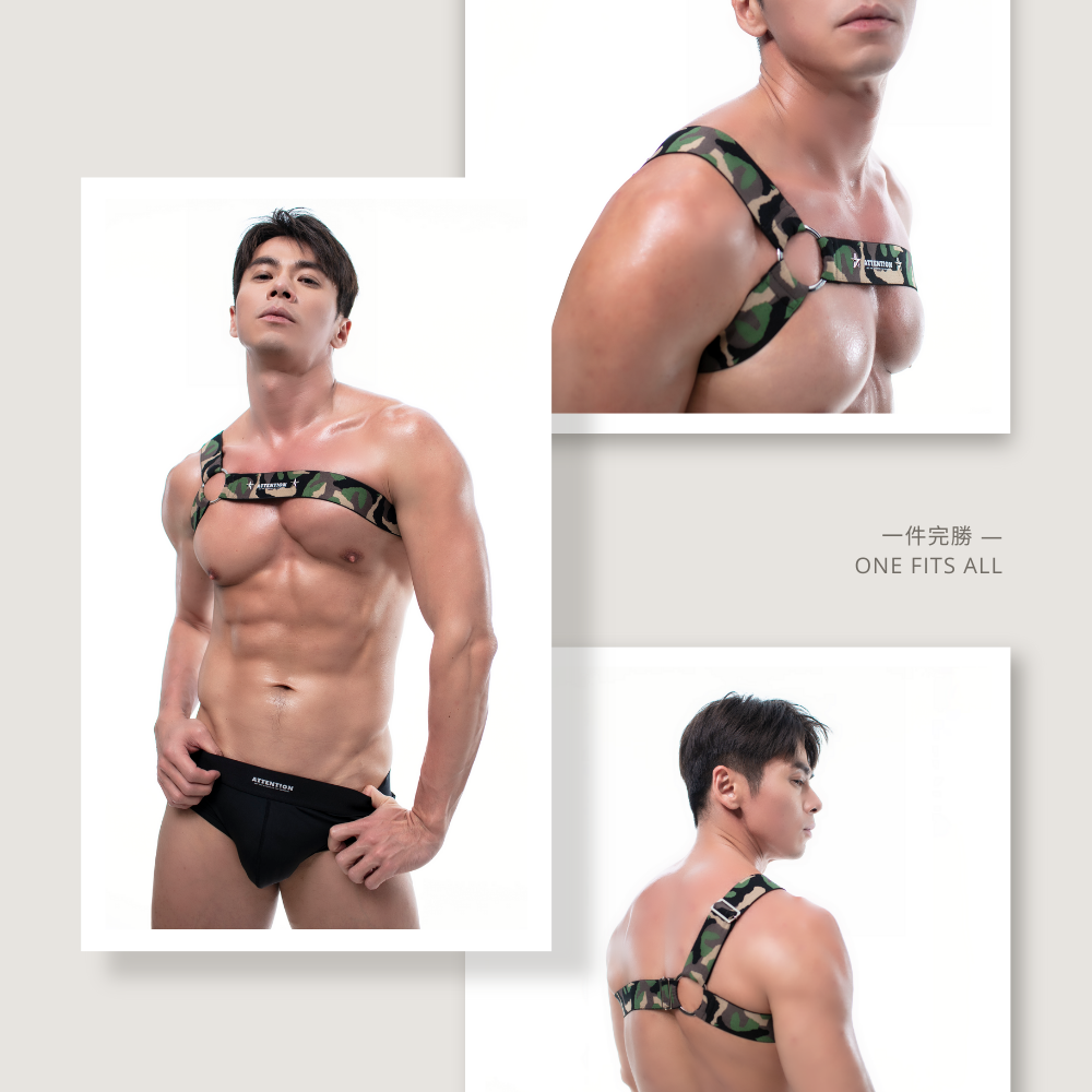 This unique single-shoulder design highlights male body, resembling a solid shield