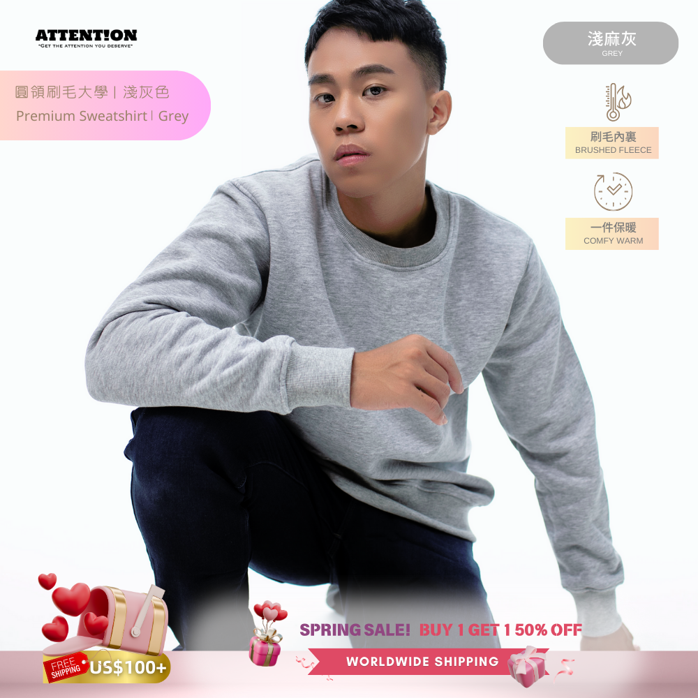 ATTN Crewneck Brushed Fleece Sweatshirt, Grey