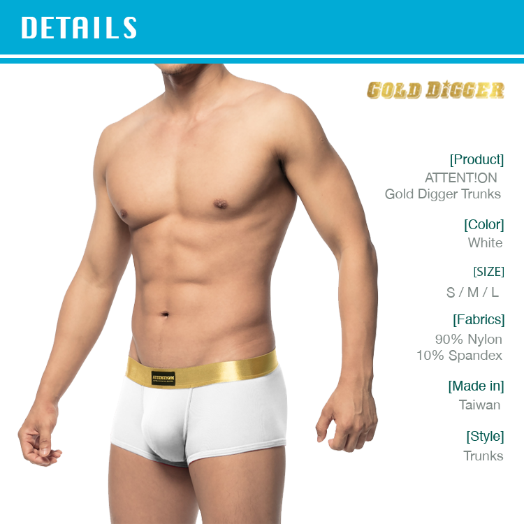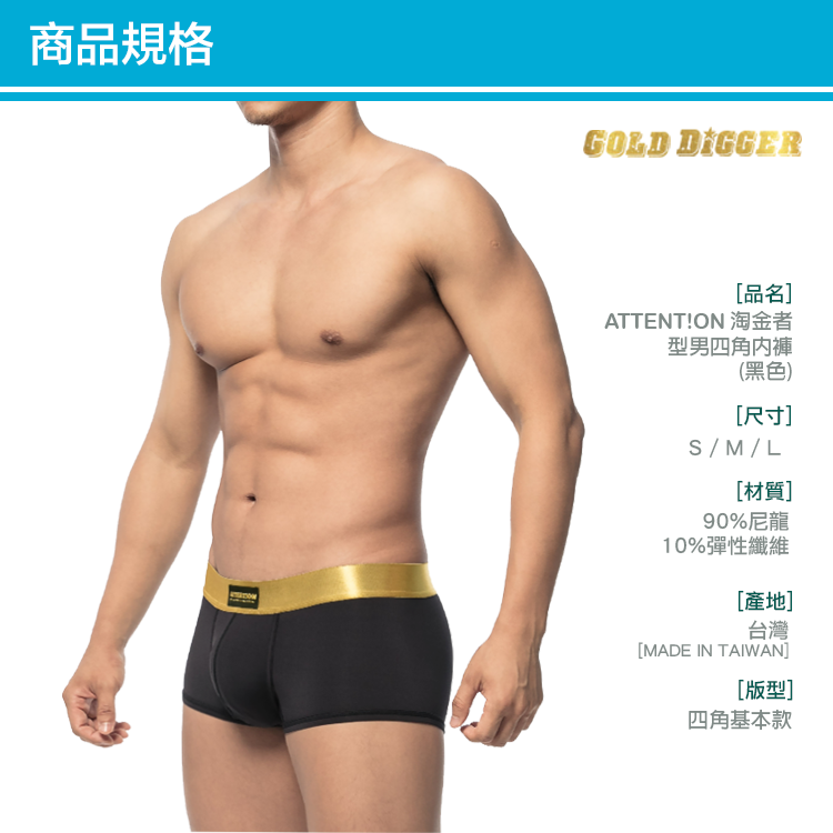 淘金者系列:淘金者系列使用金色超柔鬆緊帶,穿上後不勒不卡,四角經典的剪裁與配色實穿性高,淘金者系列是我們最熱賣的款式之一。