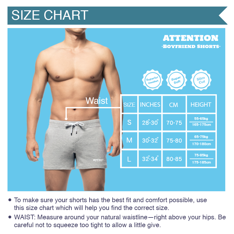 • *All AttentionWear design is limited. This BoyFriend short collection is all made of 100% polyester, but every color got slightly different surface retouch. Grey, Royal Blue, & White have cotton feel surface, Black & Blue have lightweight retouch, and Red color tech surface material.