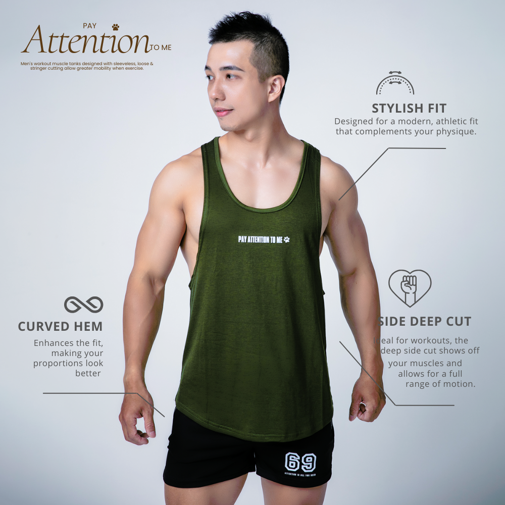 PAY ATTENTION TO ME Lightweight Tank Top, Military Green