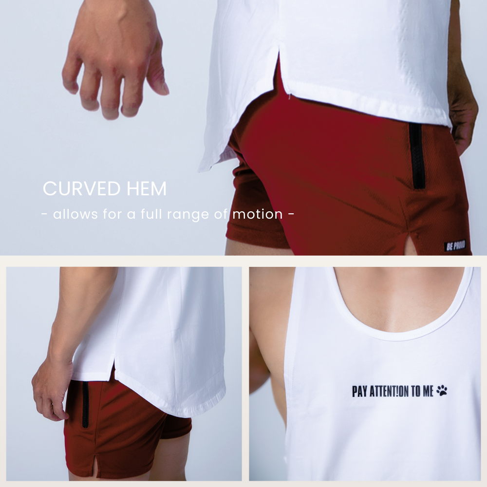 • Side Deep Cut, Stylish FitIdeal for workouts, the deep side cut shows off your muscles and allows for a full range of motion. This modern athletic fit that compliments your physique and provides freedom of movement.
