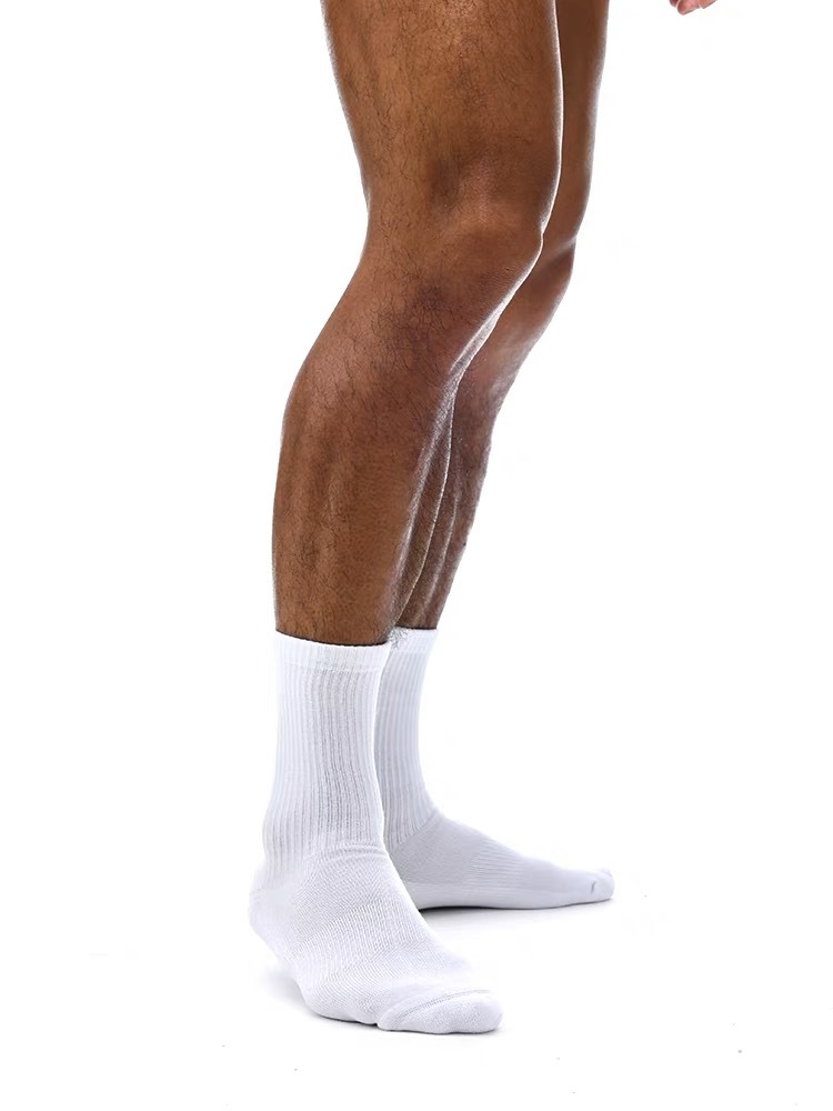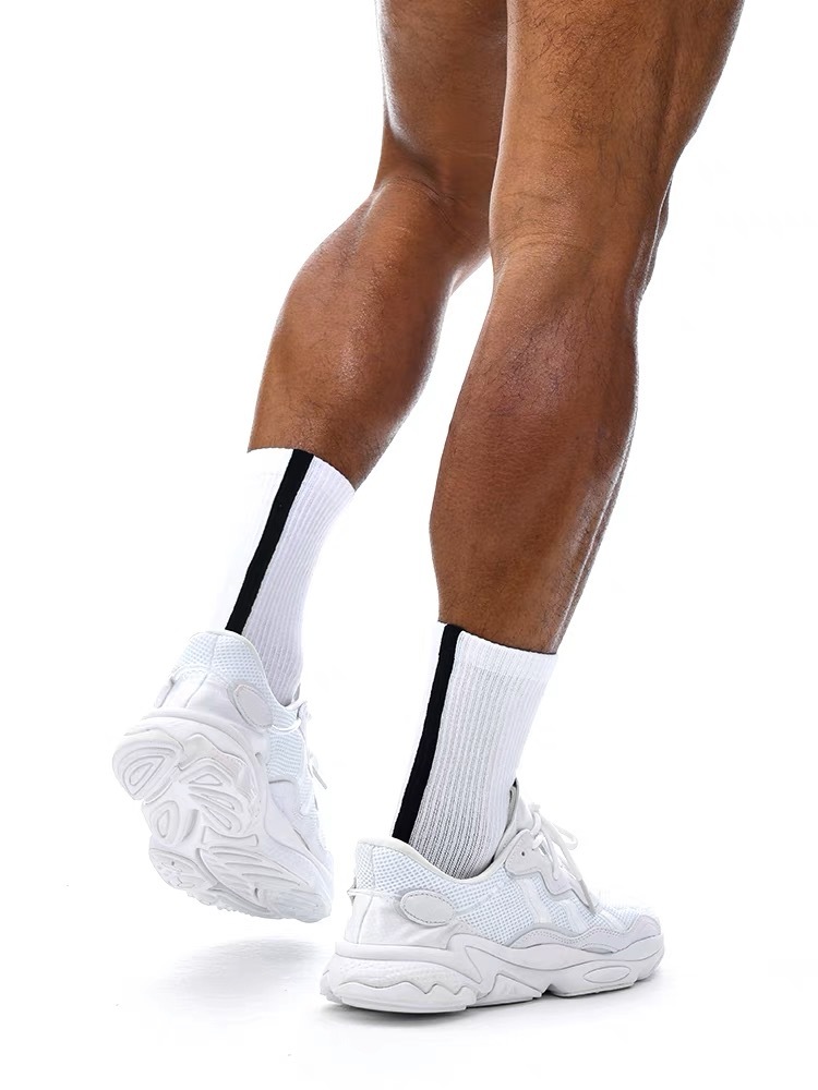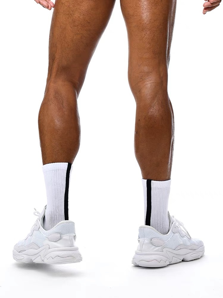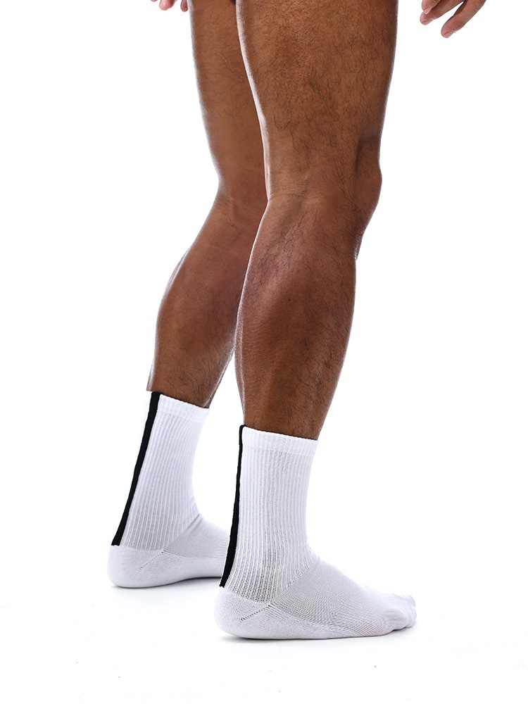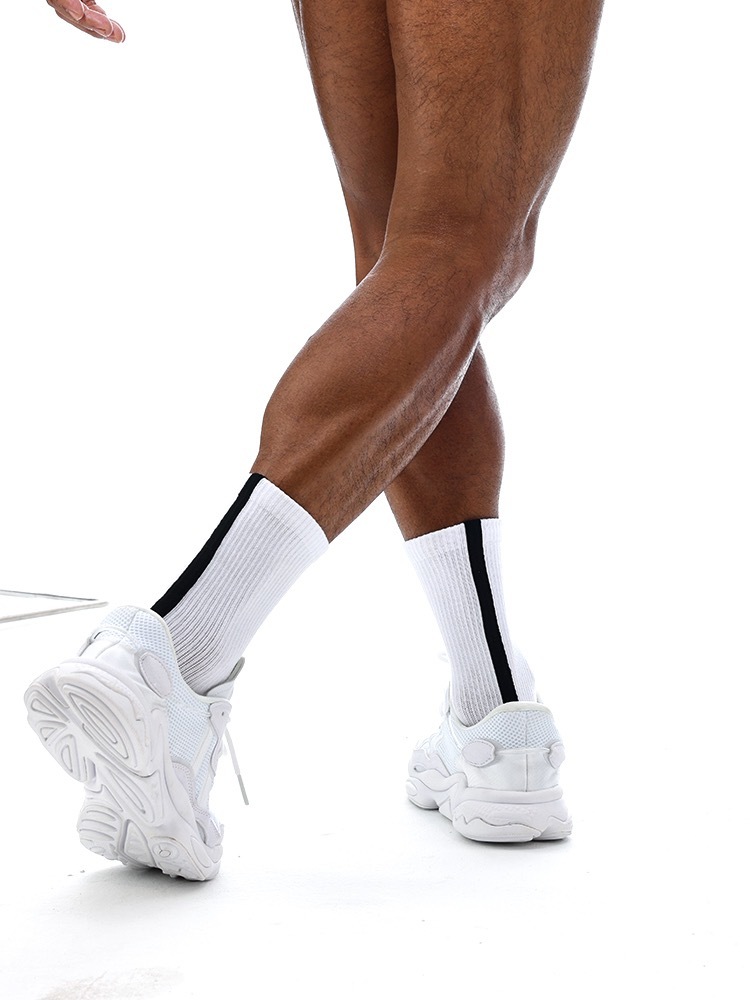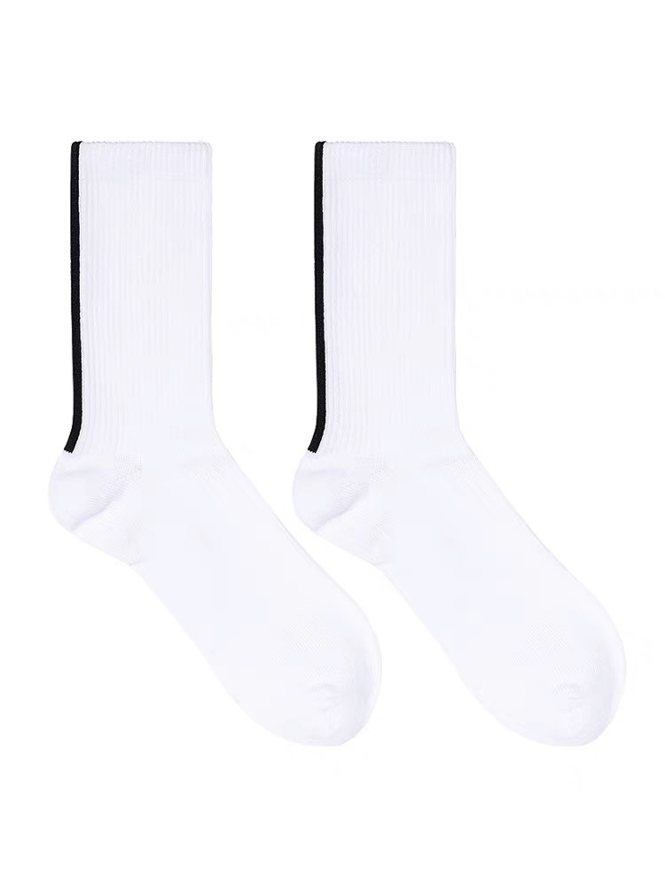 Super soft crew length socks with vertical lines detailing on the back. These pairs are made of premium cottons material and breathable elastic with extra thick cushioning for all your active need.