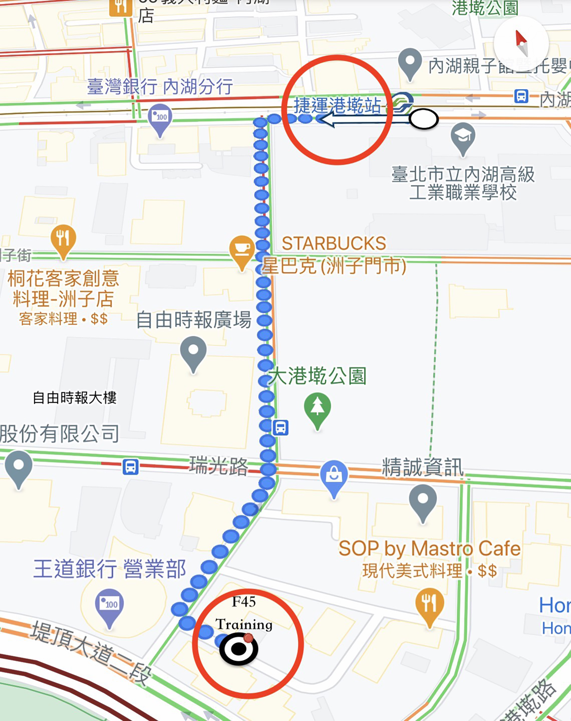 建議搭乘捷運文湖線至港墘站2號出口,步行約5-7分鐘