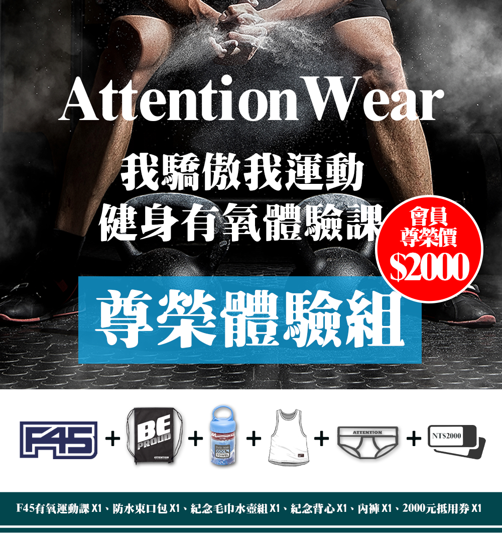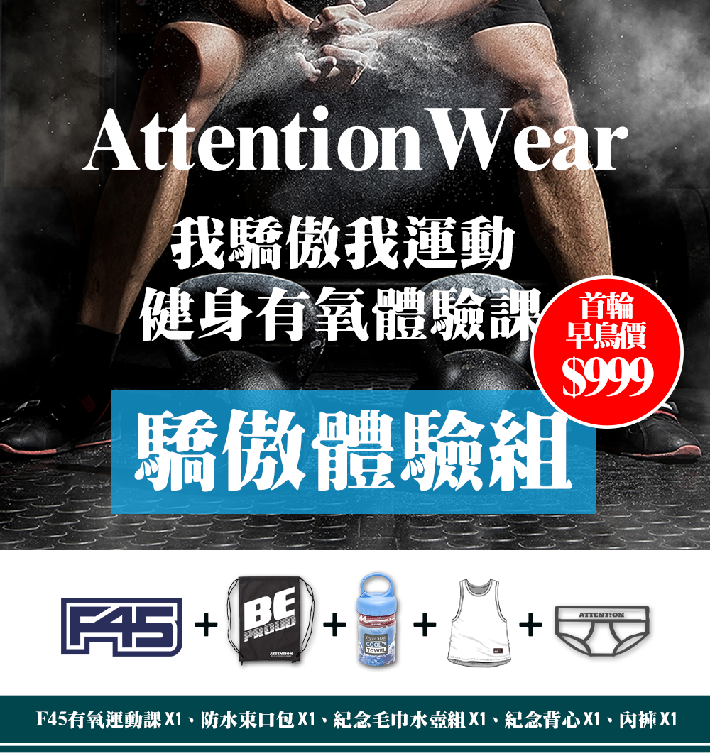 AttentionWear成立以來,不斷致力於推動男性從內在到外在的品味培養,而每年十月是台灣同志驕傲月,在這這特殊的月份,特舉辦「我驕傲我運動!AttentionWear健身有氧體驗課」。