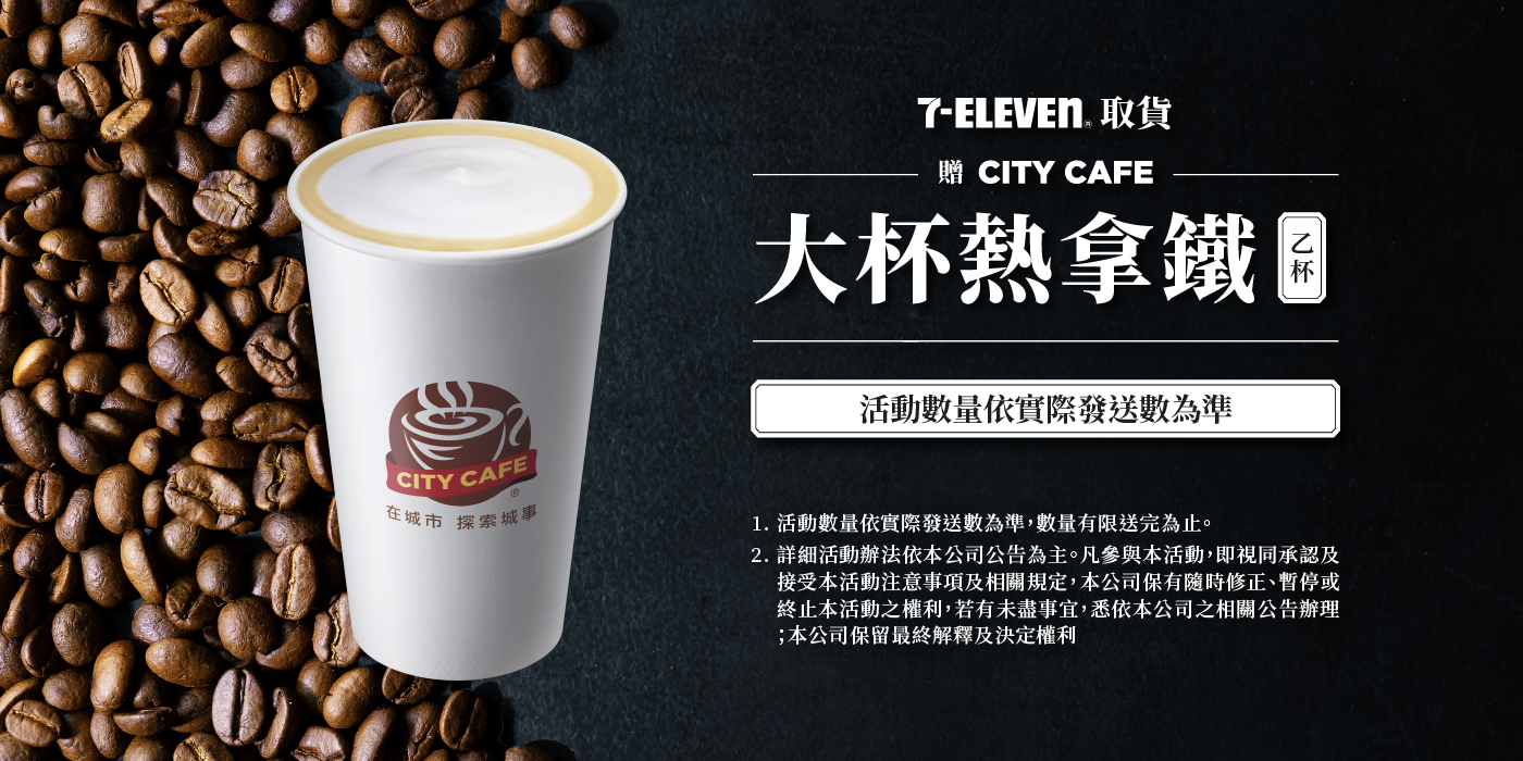 於活動時間內 ( 2022 年 2 月 21 日起至 2022 年 3 月 27 日止 ) 完成下訂並於 2022 年 4 月 17 日 23:59 前 在 7-ELEVEN 完成取件者,即享有獲取資格 ( CITY CAFE 大杯熱拿鐵 乙杯 ),贈送對象將於 2022 年 4 月 20 日起至 2022 年 4 月 30 日止依實際完成取貨順序發放,因數量有限送完為止,如未獲贈不另通知。