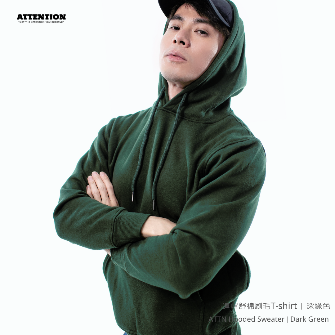 ATTN 連帽舒棉刷毛T-shirt【深綠色】 #帽T #連帽T