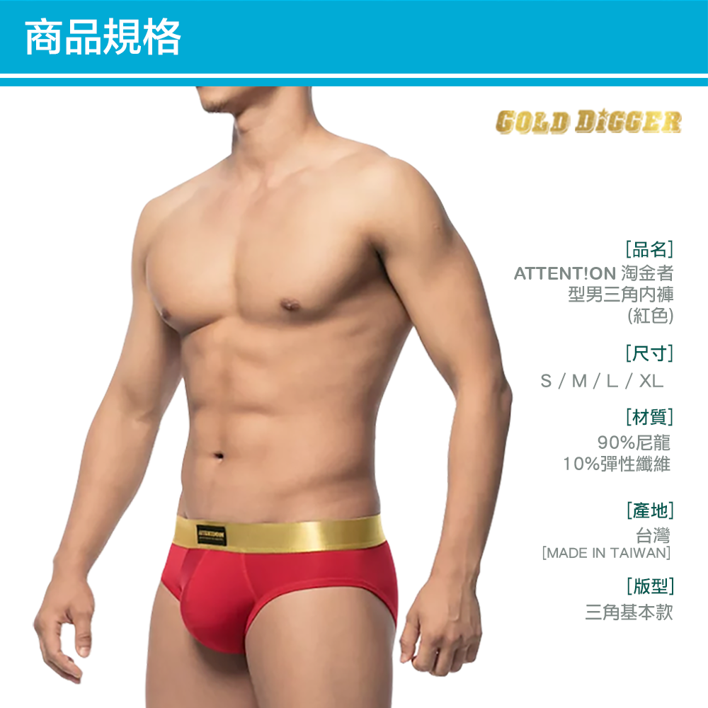 • 品名:淘金者型男三角內褲【魔力紅】