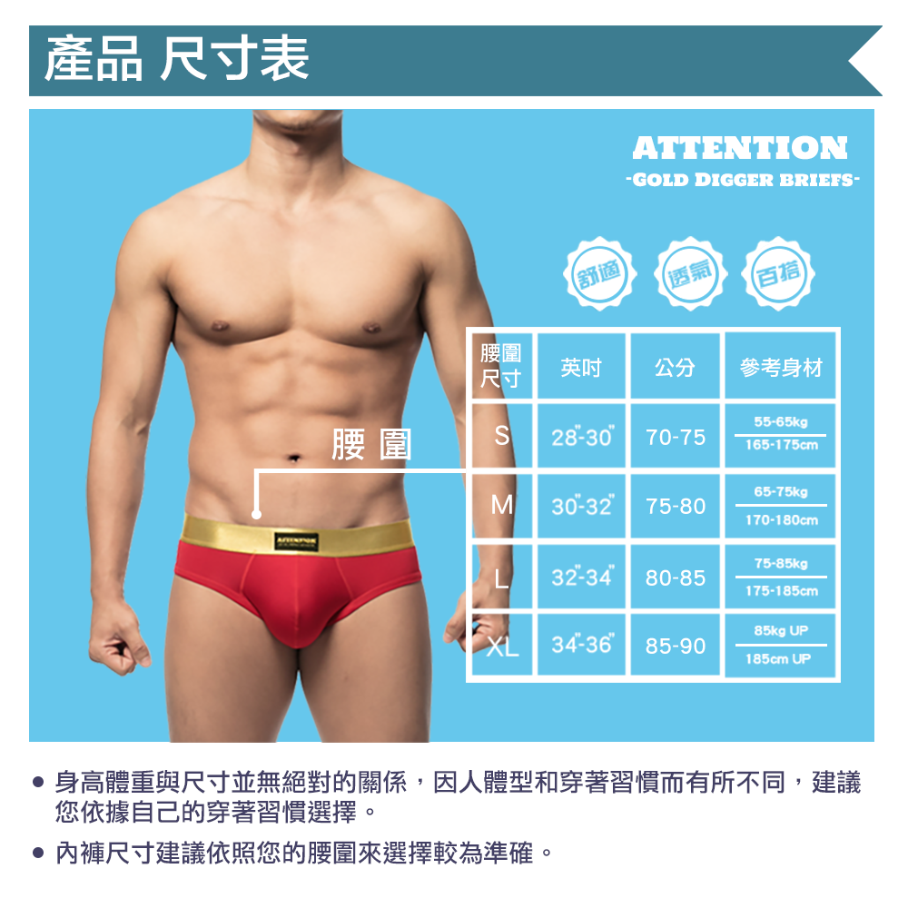 • 經典實穿版型:乾淨俐落的剪裁,把多餘的線條全部拿掉,只留下剛剛好的包覆感,與最乾淨的男性輪廓。淘金者系列的經典版型,默默把你整個人比例變好看的內褲。
