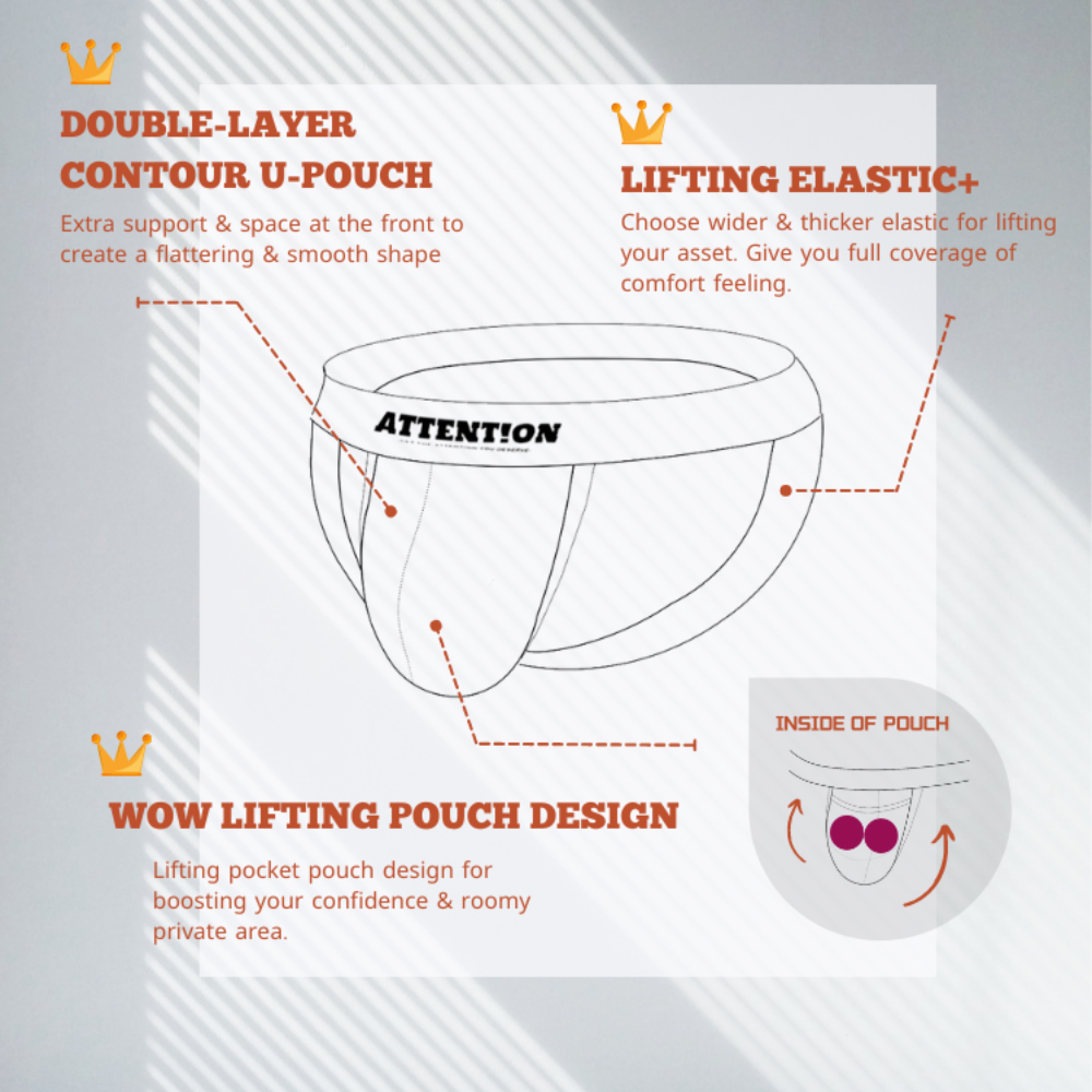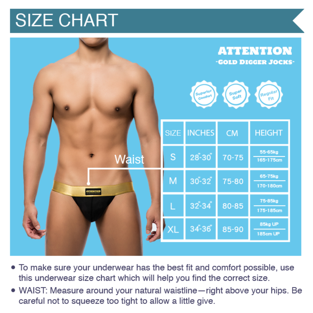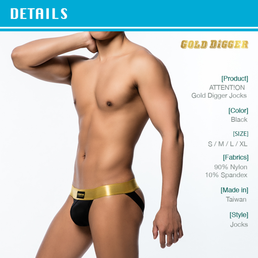 • DESIGNED FOR YOU - Our ATTN Gold Digger jockstraps feature the classic gold ATTENT!ON logo on the premium gold elastic. Each pair is made with a contoured pouch (cup pocket) for extra support. Our underwear has been designed to keep you feeling great all day and make you look sexy.